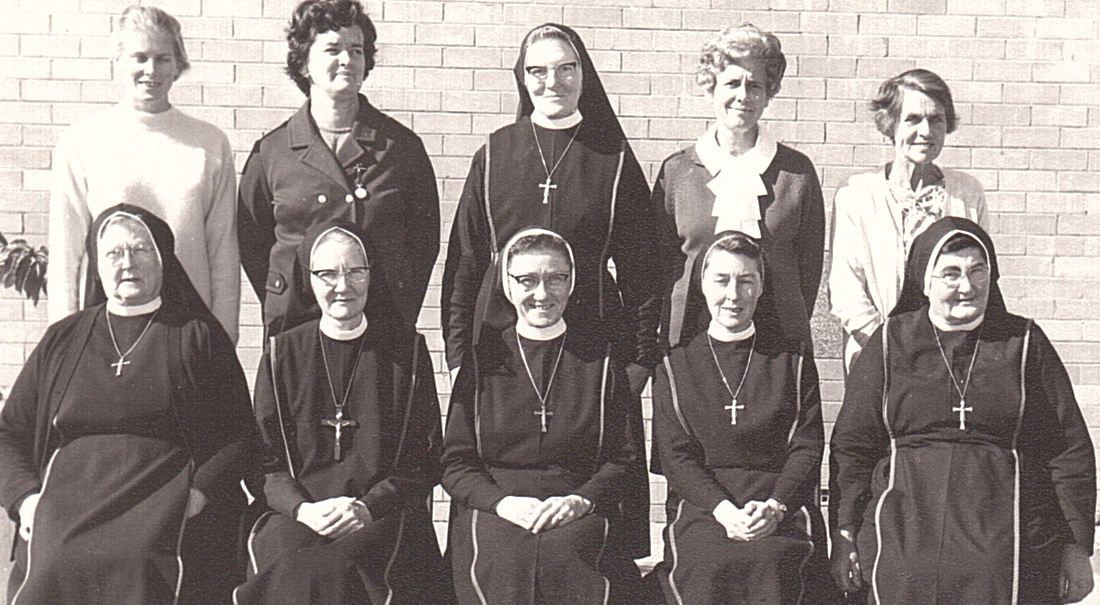 Back centre: Sr. Darerca, Mrs Stacey Front L to R: Srs Bertrand, Florence, Augustine, Gemma, Stephen